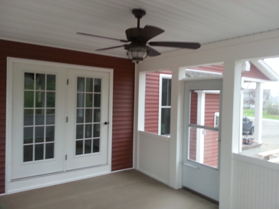 Screen porch on custom modular home Hague NY