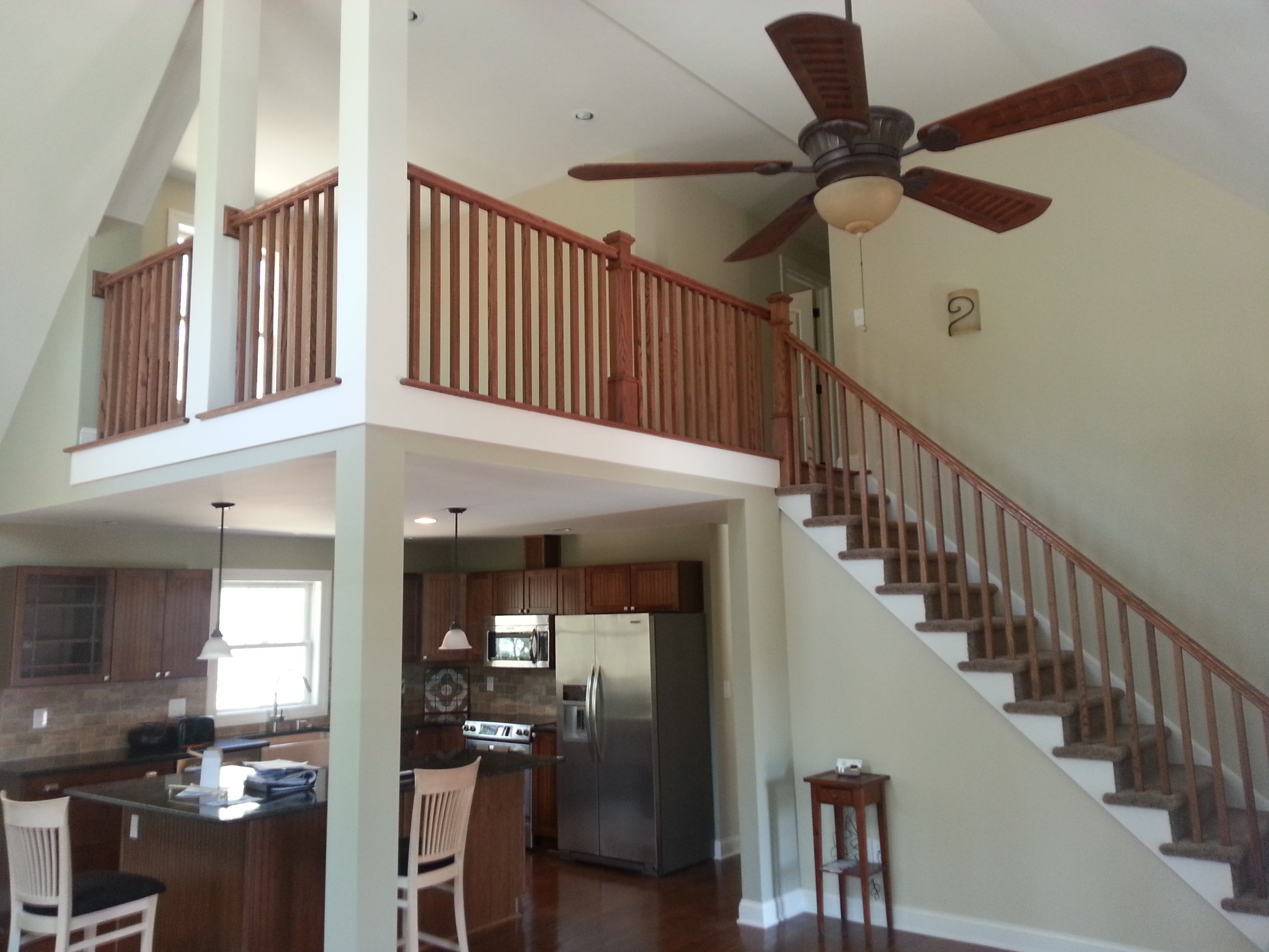 Loft overlooking great room in modular home